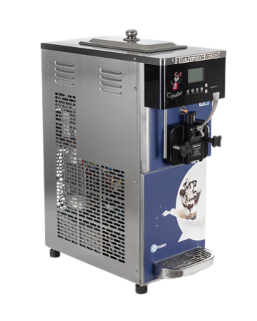Anche la TOPOLINA è una Macchina Professionale per Gelato e Yogurt Soft da banco. Ha un Piccolo Ingombro, e la macchina multifunzione puo' produrre in simultanea Milkshake,