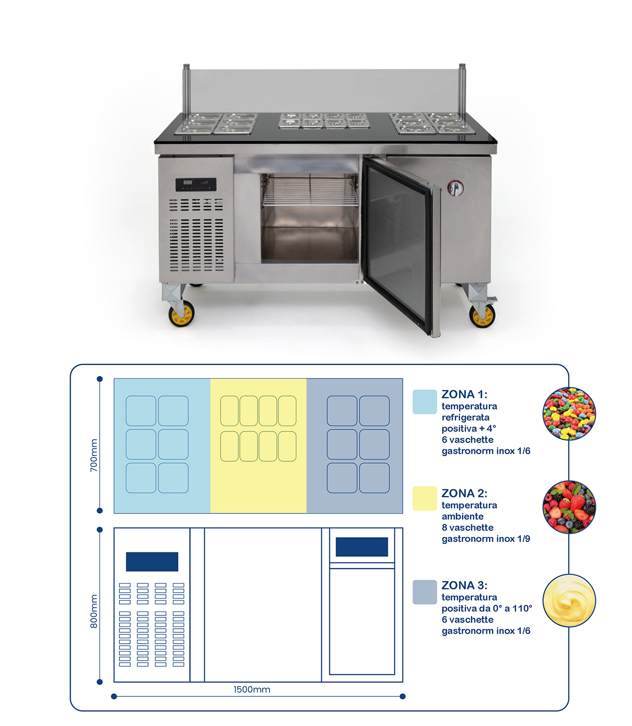 Banco di conservazione e per preparazionetutto incluso per il tuo locale!Conserva le farciture, FREDDO, CALDO E NEUTRO!